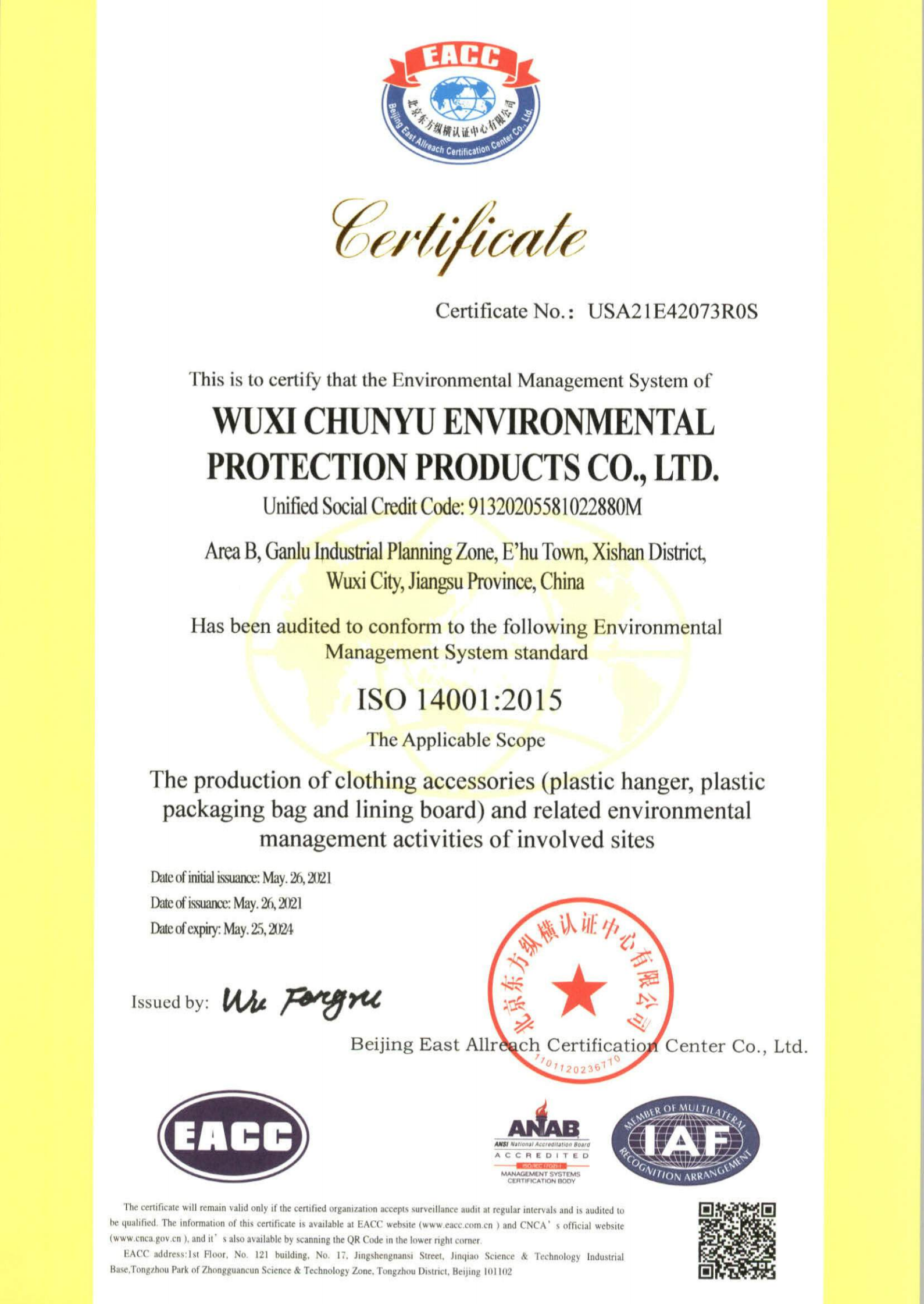 純宇環(huán)保-環(huán)境管理體系認(rèn)證證書(shū)英文