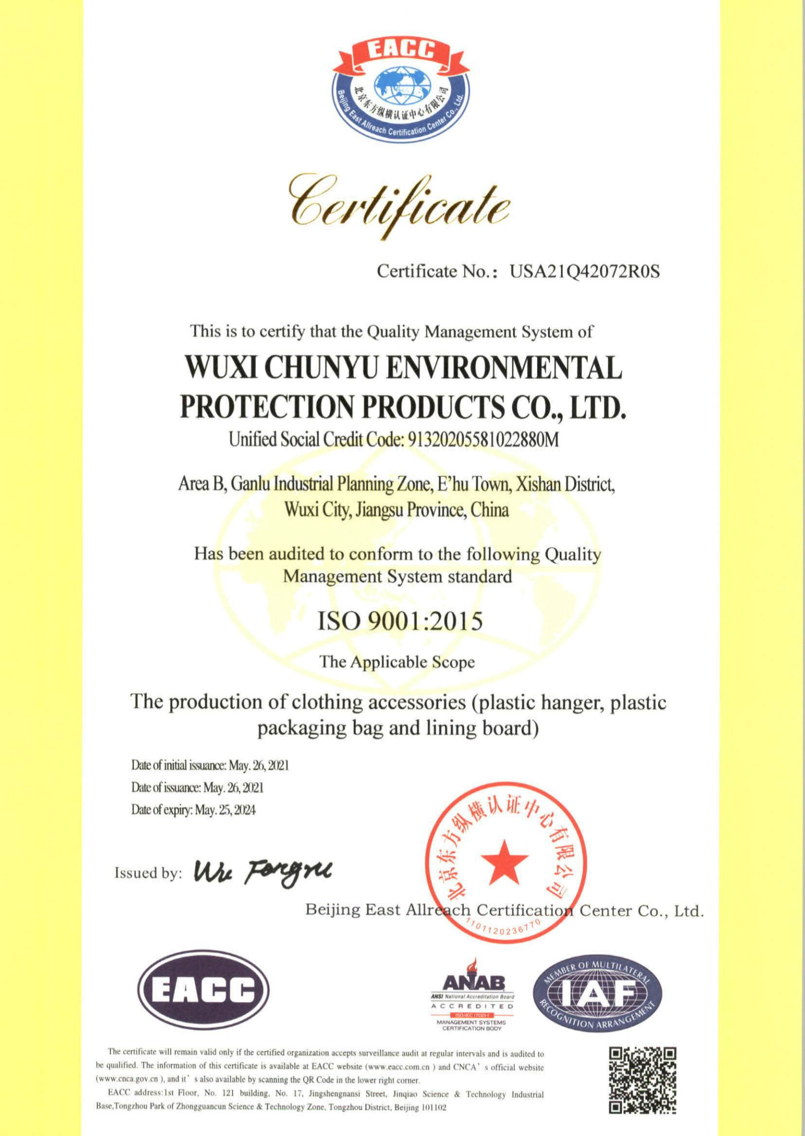 純宇環(huán)保-質(zhì)量管理體系認(rèn)證證書(shū)英文